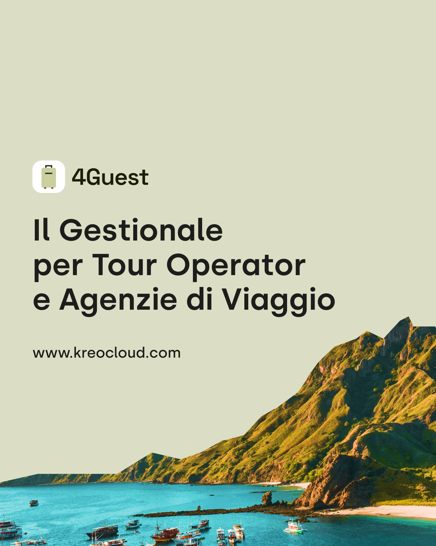4Guest è il Gestionale in Cloud dedicato ad Agenzie di Viaggio e Tour Operator. Un ecosistema completo e modulare che comprende Software Gestionale, App mobile, Sito Web, Vetrina Digitale e Firma Elettronica. Grazie ai numerosi moduli personalizzabili, 4Guest si adatta alle esigenze di ogni realtà, semplifica i processi, migliora l’operatività quotidiana e favorisce la crescita del business turistico con strumenti innovativi e flessibili.